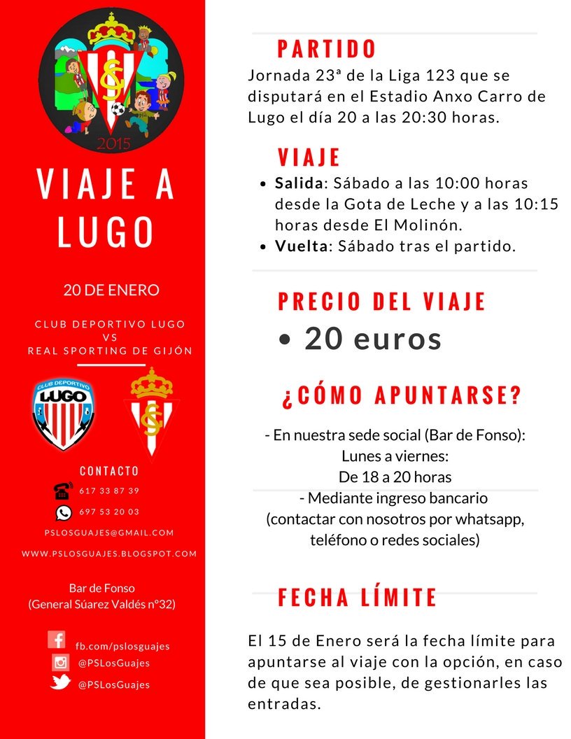 - Sentimiento Rojiblanco: viaja en el día saliendo de Gijón. 18 euros es el precio para no socios. Información más completa en su página de Facebook.